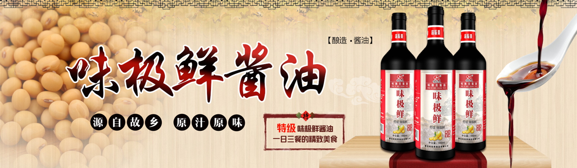 公司以市場為導向,引進先進的食品生產設備,采用釀造工藝,專業生產“味際美”牌醬油、食醋面醬蠔油等調味系列產品。目前以味極鮮醬油黃豆醬為主導,以東北非轉基因黃豆為主要原料,采用日曬夜露發酵工藝,醬香濃郁,天然、美味、健康。芝麻豆醬,包裝新穎,一經上市,立刻成為市場寵兒,深受市場追捧。